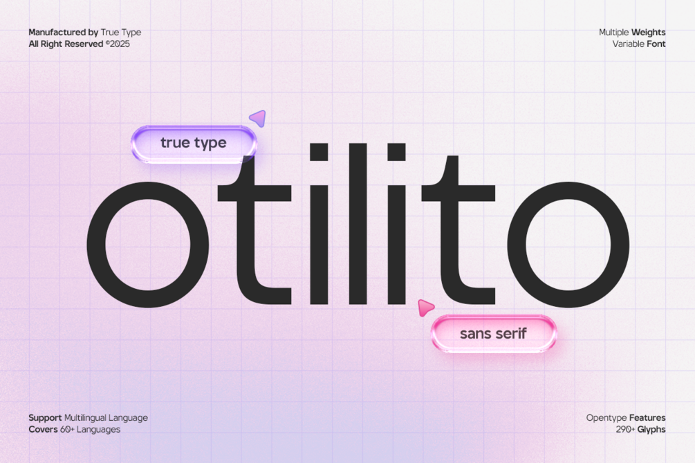 Perfect for visual identities, headlines, logos, magazines, and interfaces, TT Otilito delivers clarity without sacrificing character. It's a reliable tool for designers seeking modern aesthetics with a touch of originality.